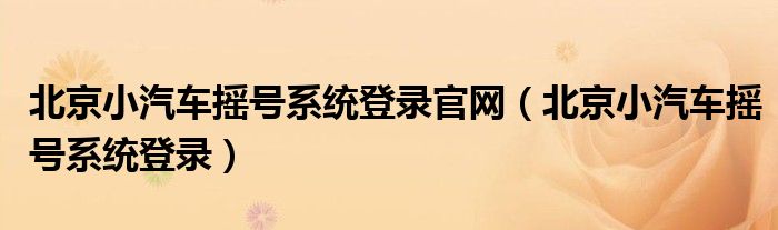 关于北京小汽车摇号系统登录官网,北京小汽车摇号系统登录这个很多人还不知道,今天菲菲来为大家解答以上的问题,现在让我们一起来看看吧!