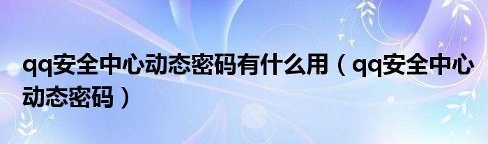 qq安全中心动态密码有什么用(qq安全中心动态密码)