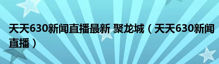 关于天天630新闻直播最新 聚龙城,天天630新闻直播这个很多人还不知道,今天菲菲来为大家解答以上的问题,现在让我们一起来看看吧!