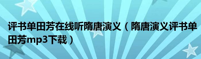 关于评书单田芳在线听隋唐演义,隋唐演义评书单田芳mp3下载这个很多人还不知道,今天菲菲来为大家解答以上的问题,现在让我们一起来看看吧!