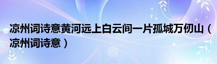 关于凉州词诗意黄河远上白云间一片孤城万仞山,凉州词诗意这个很多人还不知道,今天菲菲来为大家解答以上的问题,现在让我们一起来看看吧!