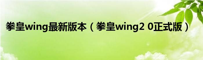 拳皇wing最新版本(拳皇wing2 0正式版)