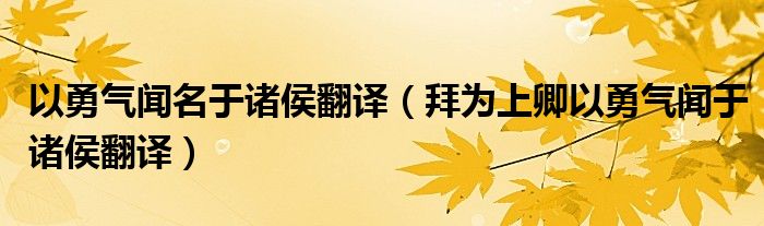 以勇气闻名于诸侯翻译(拜为上卿以勇气闻于诸侯翻译)