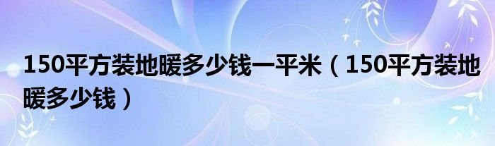 关于150平方装地暖多少钱一平米,150平方装地暖多少钱这个很多人还不知道,今天菲菲来为大家解答以上的问题,现在让我们一起来看看吧!