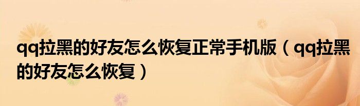关于qq拉黑的好友怎么恢复正常手机版,qq拉黑的好友怎么恢复这个很多人还不知道,今天菲菲来为大家解答以上的问题,现在让我们一起来看看吧!