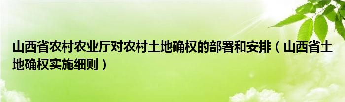 关于山西省农村农业厅对农村土地确权的部署和安排,山西省土地确权实施细则这个很多人还不知道,今天菲菲来为大家解答以上的问题,现在让我们一起来看看吧!