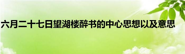 关于六月二十七日望湖楼醉书的中心思想以及意思这个很多人还不知道,今天菲菲来为大家解答以上的问题,现在让我们一起来看看吧!