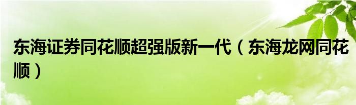 关于东海证券同花顺超强版新一代,东海龙网同花顺这个很多人还不知道,今天菲菲来为大家解答以上的问题,现在让我们一起来看看吧!