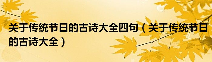 关于关于传统节日的古诗大全四句,关于传统节日的古诗大全这个很多人还不知道,今天菲菲来为大家解答以上的问题,现在让我们一起来看看吧!