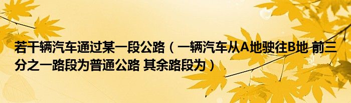 关于若干辆汽车通过某一段公路,一辆汽车从A地驶往B地 前三分之一路段为普通公路 其余路段为这个很多人还不知道,今天菲菲来为大家解答以上的问题,现在让我们一起来看看吧!