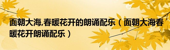 关于面朝大海,春暖花开的朗诵配乐,面朝大海春暖花开朗诵配乐这个很多人还不知道,今天菲菲来为大家解答以上的问题,现在让我们一起来看看吧!