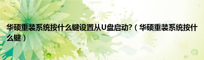 关于华硕重装系统按什么键设置从U盘启动?,华硕重装系统按什么键这个很多人还不知道,今天菲菲来为大家解答以上的问题,现在让我们一起来看看吧!