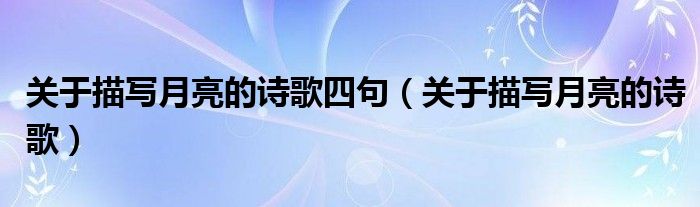 关于关于描写月亮的诗歌四句,关于描写月亮的诗歌这个很多人还不知道,今天菲菲来为大家解答以上的问题,现在让我们一起来看看吧!