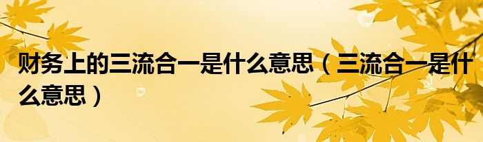 关于财务上的三流合一是什么意思,三流合一是什么意思这个很多人还不知道,今天菲菲来为大家解答以上的问题,现在让我们一起来看看吧!