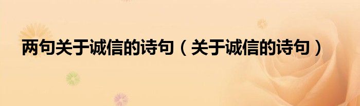 关于两句关于诚信的诗句,关于诚信的诗句这个很多人还不知道,今天菲菲来为大家解答以上的问题,现在让我们一起来看看吧!