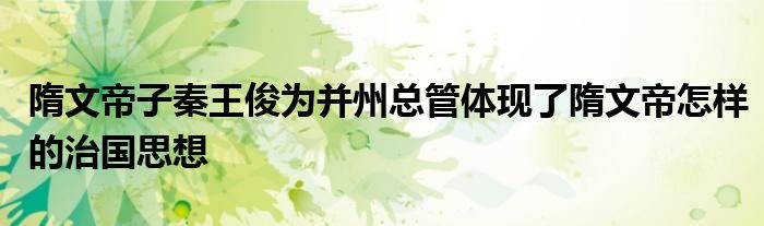 关于隋文帝子秦王俊为并州总管体现了隋文帝怎样的治国思想这个很多人还不知道,今天菲菲来为大家解答以上的问题,现在让我们一起来看看吧!