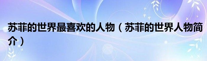 关于苏菲的世界最喜欢的人物,苏菲的世界人物简介这个很多人还不知道,今天菲菲来为大家解答以上的问题,现在让我们一起来看看吧!