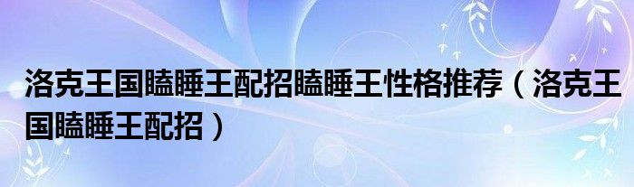 关于洛克王国瞌睡王配招瞌睡王性格推荐,洛克王国瞌睡王配招这个很多人还不知道,今天菲菲来为大家解答以上的问题,现在让我们一起来看看吧!