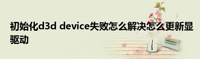 关于初始化d3d device失败怎么解决怎么更新显驱动这个很多人还不知道,今天菲菲来为大家解答以上的问题,现在让我们一起来看看吧!