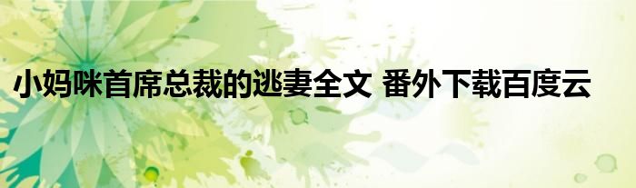 关于小妈咪首席总裁的逃妻全文 番外下载百度云这个很多人还不知道,今天菲菲来为大家解答以上的问题,现在让我们一起来看看吧!