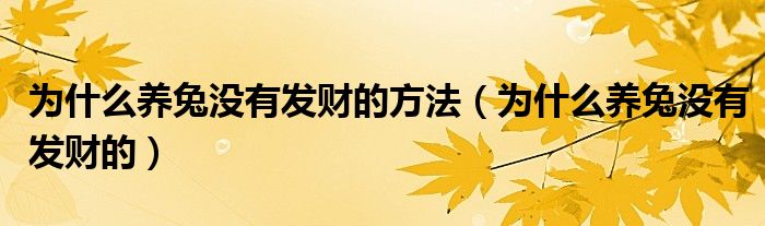 大家好,小晋来为大家解答以下问题,关于为什么养兔没有发财的方法,为什么养兔没有发财的很多人还不知道,今天让我们一起来看看吧!
