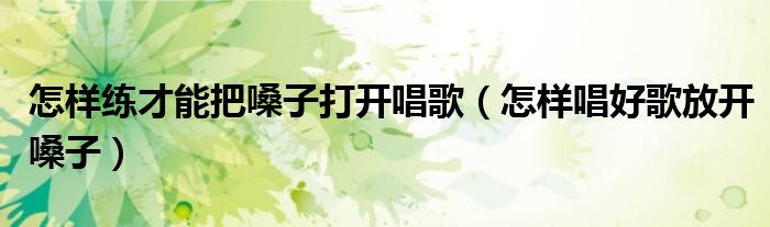 关于怎样练才能把嗓子打开唱歌,怎样唱好歌放开嗓子这个很多人还不知道,今天菲菲来为大家解答以上的问题,现在让我们一起来看看吧!