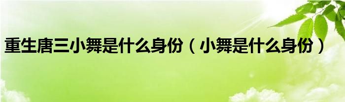 大家好,小晋来为大家解答以下问题,关于重生唐三小舞是什么身份,小舞是什么身份很多人还不知道,今天让我们一起来看看吧!