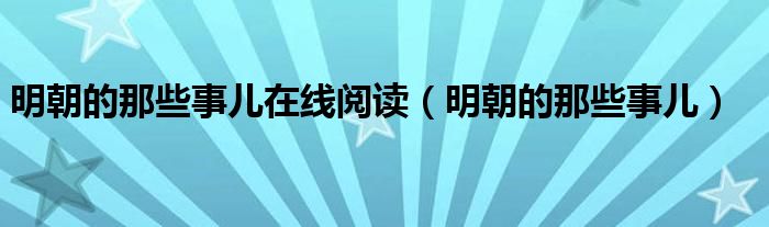 关于明朝的那些事儿在线阅读,明朝的那些事儿这个很多人还不知道,今天菲菲来为大家解答以上的问题,现在让我们一起来看看吧!