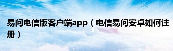 大家好,小晋来为大家解答以下问题,关于易问电信版客户端app,电信易问安卓如何注册很多人还不知道,今天让我们一起来看看吧!