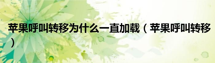 大家好,小晋来为大家解答以下问题,关于苹果呼叫转移为什么一直加载,苹果呼叫转移很多人还不知道,今天让我们一起来看看吧!