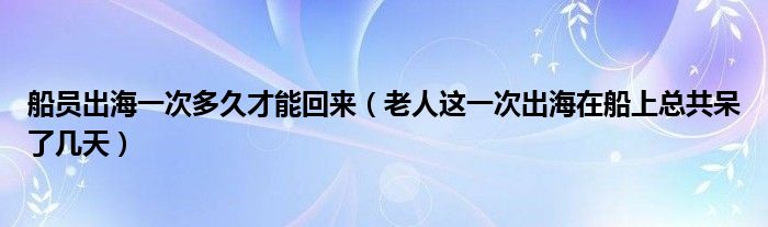 船员出海一次多久才能回来(老人这一次出海在船上总共呆了几天)