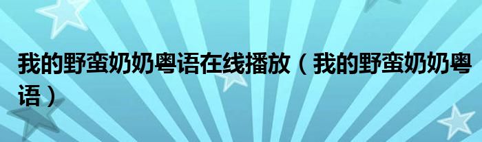 我的野蛮奶奶粤语在线播放(我的野蛮奶奶粤语)
