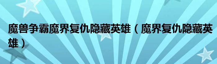 魔兽争霸魔界复仇隐藏英雄(魔界复仇隐藏英雄)