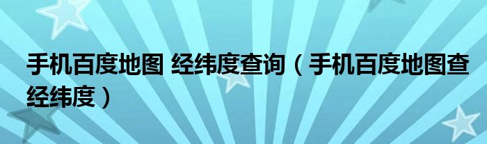 大家好,小晋来为大家解答以下问题,关于手机百度地图 经纬度查询,手机百度地图查经纬度很多人还不知道,今天让我们一起来看看吧!