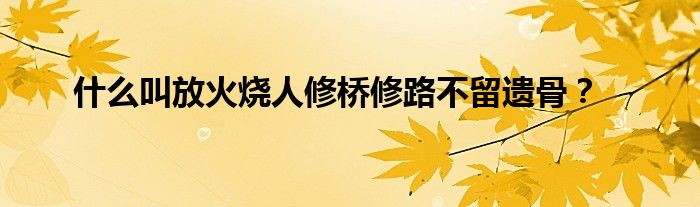 关于什么叫放火烧人修桥修路不留遗骨?这个很多人还不知道,今天菲菲来为大家解答以上的问题,现在让我们一起来看看吧!