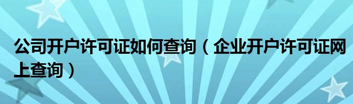 关于公司开户许可证如何查询,企业开户许可证网上查询这个很多人还不知道,今天菲菲来为大家解答以上的问题,现在让我们一起来看看吧!