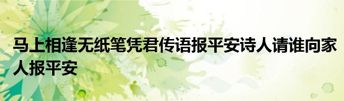 关于马上相逢无纸笔凭君传语报平安诗人请谁向家人报平安这个很多人还不知道,今天菲菲来为大家解答以上的问题,现在让我们一起来看看吧!