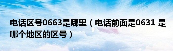 关于电话区号0663是哪里,电话前面是0631 是哪个地区的区号这个很多人还不知道,今天菲菲来为大家解答以上的问题,现在让我们一起来看看吧!