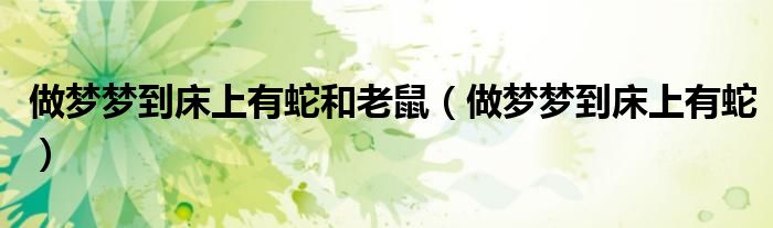 关于做梦梦到床上有蛇和老鼠,做梦梦到床上有蛇这个很多人还不知道,今天菲菲来为大家解答以上的问题,现在让我们一起来看看吧!