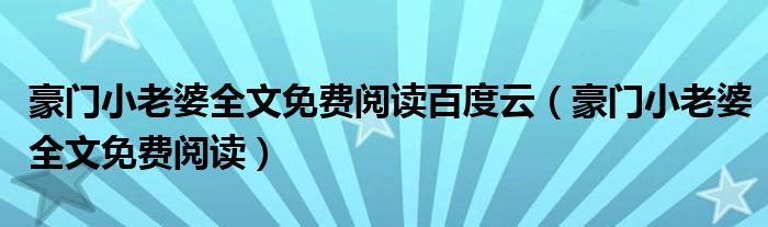 关于豪门小老婆全文免费阅读百度云,豪门小老婆全文免费阅读这个很多人还不知道,今天菲菲来为大家解答以上的问题,现在让我们一起来看看吧!