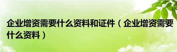 关于企业增资需要什么资料和证件,企业增资需要什么资料这个很多人还不知道,今天菲菲来为大家解答以上的问题,现在让我们一起来看看吧!
