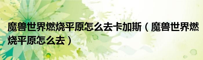 关于魔兽世界燃烧平原怎么去卡加斯,魔兽世界燃烧平原怎么去这个很多人还不知道,今天菲菲来为大家解答以上的问题,现在让我们一起来看看吧!