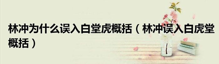 关于林冲为什么误入白堂虎概括,林冲误入白虎堂概括这个很多人还不知道,今天菲菲来为大家解答以上的问题,现在让我们一起来看看吧!