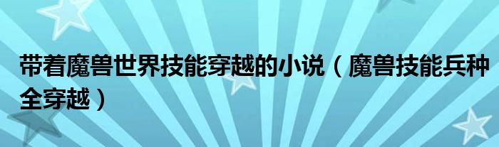 带着魔兽世界技能穿越的小说(魔兽技能兵种全穿越)