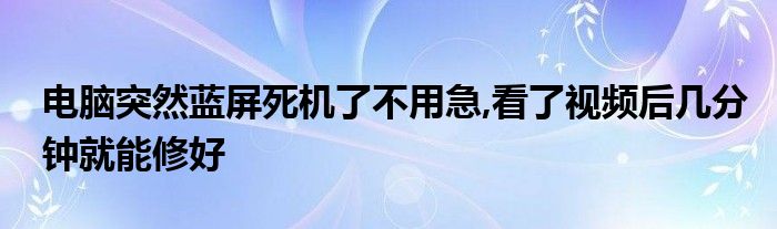 电脑突然蓝屏死机了不用急,看了视频后几分钟就能修好