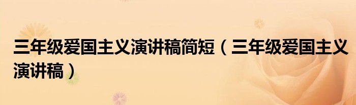 关于三年级爱国主义演讲稿简短,三年级爱国主义演讲稿这个很多人还不知道,今天菲菲来为大家解答以上的问题,现在让我们一起来看看吧!