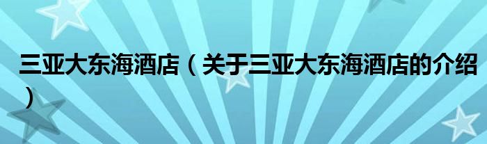 三亚大东海酒店(关于三亚大东海酒店的介绍)