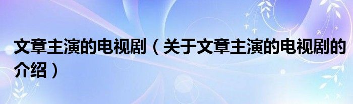 文章主演的电视剧(关于文章主演的电视剧的介绍)