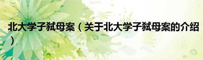大家好,今天小乐来为大家解答以上的问题。北大学子弑母案,关于北大学子弑母案的介绍很多人还不知道,现在让我们一起来看看吧!