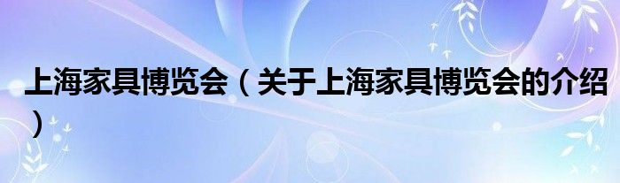 大家好,今天小乐来为大家解答以上的问题。上海家具博览会,关于上海家具博览会的介绍很多人还不知道,现在让我们一起来看看吧!